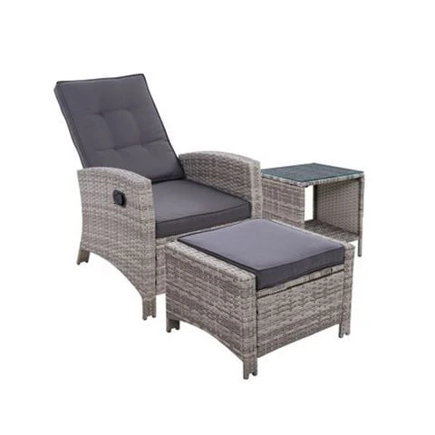 Now you can really sit back and chill in the outdoors with the Gardeon Outdoor Wicker Recliner Set. Comprising an oversized recliner and matching ottoman , the outdoor ensemble is everything you need for relaxation in elegant wicker style. The set is made of UV-resistant and weatherproof PE wicker so that you never have to worry about rust, corrosion or weathering issues.