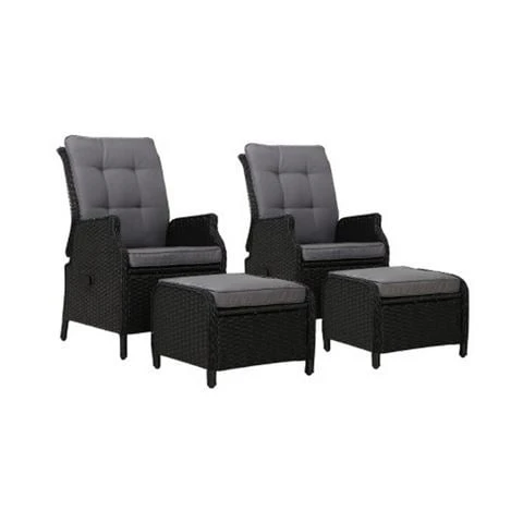 Now you can really sit back and chill in the outdoors with the Gardeon Wicker Recliner Set. Comprising two oversized recliners and two matching ottoman, the outdoor ensemble is everything you need for relaxation in elegant wicker style.