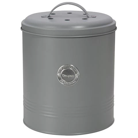 The Typhoon Living Compost Caddy Grey is made from tin and comes with a removable bucket made from durable materials. Featuring a lid, and also two carbon filters to keep contents fresh, this caddy is ideal for storing compostable kitchen waste.
